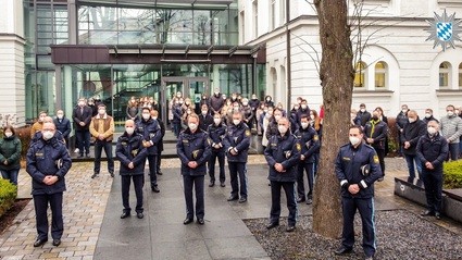Als Zeichen der Solidarität und Anteilnahme mit den beiden getöteten Kollegen beteiligten sich auch die niederbayerischen Polizeidienststellen am Freitag, 04.02.2022, um 10:00 Uhr an der bundesweiten Schweigeminute.