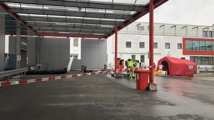 Gegen 9 Uhr kam es am Montag, den 26.11., im Caritas Krankenhaus St. Josef in Regensburg zu einem Großeinsatz an Feuerwehr und Rettungskräften. Aus der Notausnahme gab es einen Notruf, dass stark ätzendes Desinfektionsmittel "Peressigsäure" in einem Raum ausgelaufen sei.