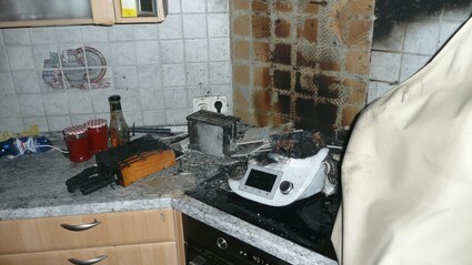 Am Mittwoch, 30.08.2017, gegen 04.00 Uhr kam es in einem Mehrfamilienhauses, Am Kaiser-Otto-Ring, zu einem Brand im Küchenbereich. Der 4-jährige Sohn des Brandleiders wurde durch Brandgeruch wach und weckte daraufhin seinen Vater. Als dieser in die Küche kam, stellte er fest, dass ein Thermomix und ein Toaster, welche auf einem Herd standen, aus bisher ungeklärter Ursache brannten. Den 43-jährigen Geschädigten gelang es noch vor Eintreffen der Feuerwehr die Flammen selbständig zu löschen. Die insgesamt fünf Hausbewohner erlitten leichte Rauchvergiftungen und wurden noch vor Ort von Rettungskräften ärztlich versorgt. Eine Person musste vorsorglich in ein Krankenhaus verbracht werden. Das Anwesen wurde von der FFW Schierling „entraucht“ und die Bewohner verbrachten den Rest der Nacht bei Verwandten. Lt. ersten Schätzungen entstand durch den Brand und die Rußbildung ein Schaden von mindestens 15.000.- €.