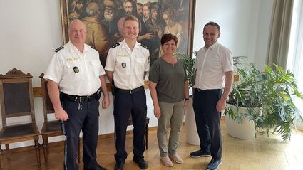 Die Bürgermeister der im Dienstgebiet ansässigen Gemeinden Aufhausen (Schmid Anton), Altenthann (Harald Herrmann), Bach a.d.D. (Thomas Schmalzl), Brennberg (Irmgard Sauerer), Mötzing (Reinhard Knott), Sünching (Robert Spindler), Wiesent (Elisabeth Kerscher) sowie der Marktgemeinde Donaustauf (Jürgen Sommer) und der Stadt Wörth a.d.D. (Josef Schütz) kamen in den letzten Wochen zu mehreren Terminen mit dem neuen Inspektionsleiter der PI Wörth a.d.D., Polizeihauptkommissar Matthias Löffler, und dessen Stellvertreter PHK+ Neft zusammen.